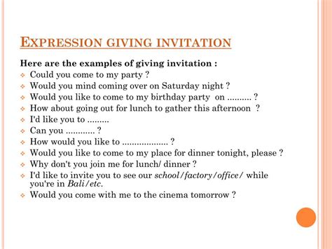 Invitation Expression - Nah dalam artikel ini admin akan mengupas habis expression invitation (mengundang), accepting invitation ( menerima ) &. Are you looking for some effective english phrases to invite someone on any special occasion? 30 english phrases to invite someone in english. Ever wondered about the right way to invite someone over for dinner or to join you for a movie night?.
