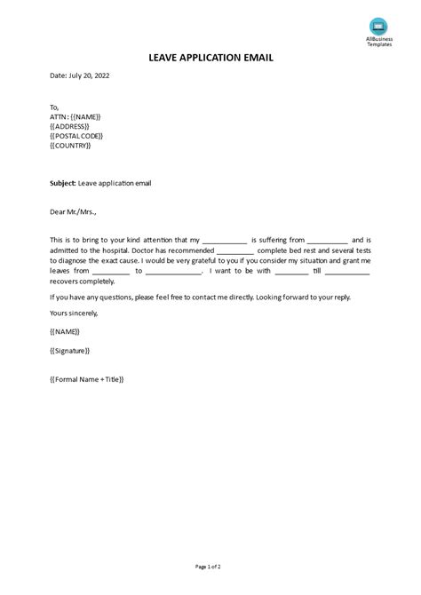 50 Simple Leave Request Emails (Free Samples) PrintableTemplates from printabletemplates.com
